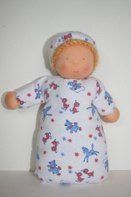 Door de wollen vulling is de pop lekker zacht en ontstaat het gevoel dat de pop "leeft", omdat ze de warmte en geur van het kind aanneemt.