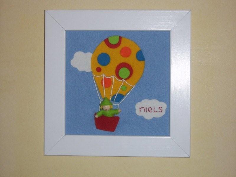 Viltschilderijtje luchtballon cirkels Voorbeeld met naam Prijs: € 44,95 |